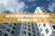 大家好,今天小编关注到一个比较有意思的话题,就是关于90平方有房产税吗的问题,于是小编就整理了3个相关介绍90平方有房产税吗的解答,让我们一起看看吧。一套房面积在90平米以内需要上多少税?新房办房产证...